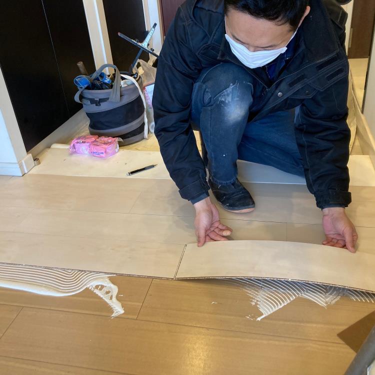 2024年5月2日 廊下のフローリングリフォームでコストダウンしたい。でも、何をどう決めれば良いのか迷いますよね。本記事は「廊下のフローリング リフォーム」に特化し、部分リフォームでも仕上がりとコストパフォーマンスを両立する手順を、専門用語を使わずに、分かりやすい言葉でお伝えします。フローリングの割付(両端のバランス)・段差と見切り(リビングや寝室のドア下にある仕切り材)・工事中の通れない時間の短縮という3つの軸に沿って、廊下のフローリング工事をしながらでも、家族の生活を止めない実践策を分かりやすく解説します。 もくじ1 廊下工事の費用を左右する「3つの軸」を先に整える1.1 上貼りと張替えの決め方(下地・高さ・音の3指標)1.2 家具・養生・動線を整え、無駄な工数を消す段取り2 材料ロスを抑える割付設計(廊下幅×板幅)2.1 “有効幅”の測り方と板幅の割付手順2.2 端材率の目安と予備(ロットを揃える)2.3 仕切りが多い場所の攻略(ドア前・収納前の工夫)3 ドア干渉の確認とアンダーカットの4 生活を止めない施工時短テクニック4.1 片側寄せの二期施工で夜も通れる現場づくり4.2 直線主体でカット数と騒音を減らすレイアウト4.3 玄関框・巾木は最初に決める(精度と時短の要)5 見積もりで損しないためのチェックと現地調査の伝え方5.1 膨らみやすい5項目を先に固定(処分・見切り・下地・ドア調整・養生)5.2 現地調査で伝える寸法・写真・注意点6 まとめ 廊下工事の費用を左右する「3つの軸」を先に整える廊下は面積が小さいのに、家の中でいちばん人が行き来します。だから、わずかな判断の違いが費用と暮らしやすさに影響します。最初に整えるのは、①どこまでを施工するか(面積と境界)②段差の加工ができる上貼り材を選ぶ③家族がいつ通れるか(通行の計画)の三点です。この順番で考えると、迷いが減り、見積の比較もしやすくなります。上貼りと張替えの決め方(下地・高さ・音の3指標)新しくするフローリングは、下地がしっかり(床の強度)していて、廊下と繋がっている箇所の段差をなくす加工ができるフローリングであれば、フローリングは「張り替え」ではなく、「上貼り」で済みます。「上貼りフローリング」は、解体や廃材が少なく、工期も短いので、廊下を通れなくなる時間も短くできます。今使っているフローリングは、踏むと沈む、広い範囲で床鳴りがする、フローリングに所々で浮いている箇所がある。このような現象が目立つなら、下地を補修してから「上貼り」すると安心です。また、開き戸の下や敷居との高さの差が数ミリでも選ぶフローリング材によっては、へんてこな見た目になるので注意が必要です。上貼り材を選ぶ前に、ドア下の隙間・敷居との差・戸当たりを測り、生活の中で違和感が出ないかをチェックしてみましょう。段差を解消する加工について詳しくはコチラ→「張り替え」と「上貼り」の工法と仕上がりを正しく知ろうフローリングのリフォームは、「どこまで自然に貼れるか」で仕上がりの印象が決まります。家具・養生・動線を整え、無駄な工数を消す段取り家具の大移動を前提にせず、片側寄せ→工事→反対側の順に進めると、工事中の廊下通行がしやすくなります。工具を使う場所は、騒音が出ても気ならない所を選び、養生を先に決め、騒音が出やすい作業にできる限り配慮するような業者を選ぶと、家族の負担がぐっと減ります。段取りは「誰が、いつ、どこを通るか」を業者と共有しましょう。 材料ロスを抑える割付設計(廊下幅×板幅)材料費を抑える近道は、貼る前の計画にあります。廊下は幅が限られるため、板の幅の取り方で端材の量と見た目のバランスが大きく変わります。左右の見え方を揃え、最終列が極端に細くならないように割付を整えるだけで、仕上がりの品位が一段上がります。難しい計算は不要ですが、起点の位置と板の向きで結果が変わる点に気をつけましょう。“有効幅”の測り方と板幅の割付手順まず、巾木や壁の歪みを除いた有効幅をメジャーで取り、廊下の数カ所で測って平均を出します。有効幅を板幅で割り、必要枚数を算出したら、最終列の幅が50〜70mm未満にならないように、起点側の化粧幅を少し調整します。目線は左右の不均衡に敏感です。視線の流れに合わせて板目の方向を決め、曲がり角では区切りの線を先に床に描いておくと、現場で迷いません。「きれいに通ったライン」が、見た目と耐久性の両方を支えます。端材率の目安と予備(ロットを揃える)直線主体の廊下なら、端材率は**10〜12%を目安に。ドアや収納が多い家では15%**程度まで見ておくと安心です。発注は必要量に端材率を足し、同一ロット(同じ時期に生産された床材)で確保します。箱ごとの色味の微差は並べると意外に目立つので、ロットを混ぜない工夫が仕上がりを守ります。万一の割れや傷に備え、予備を1箱用意しておくと、工事が止まりません。仕切りが多い場所の攻略(ドア前・収納前の工夫)仕切りが集中