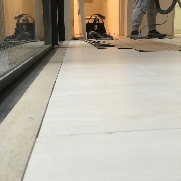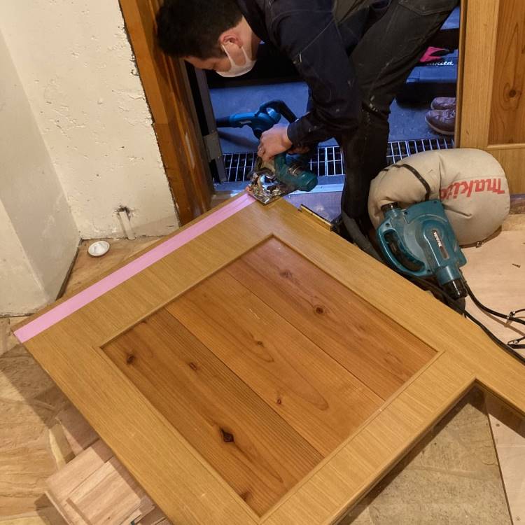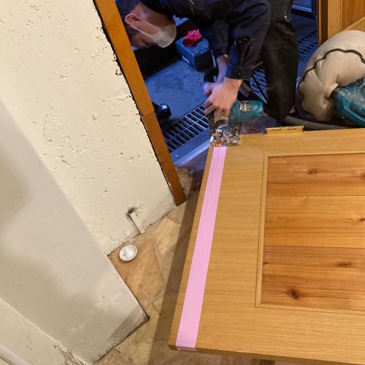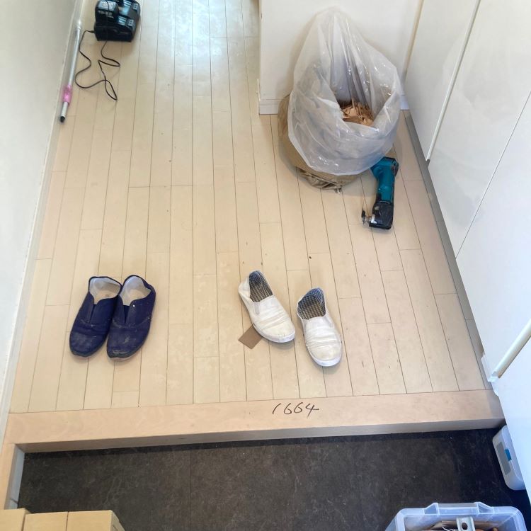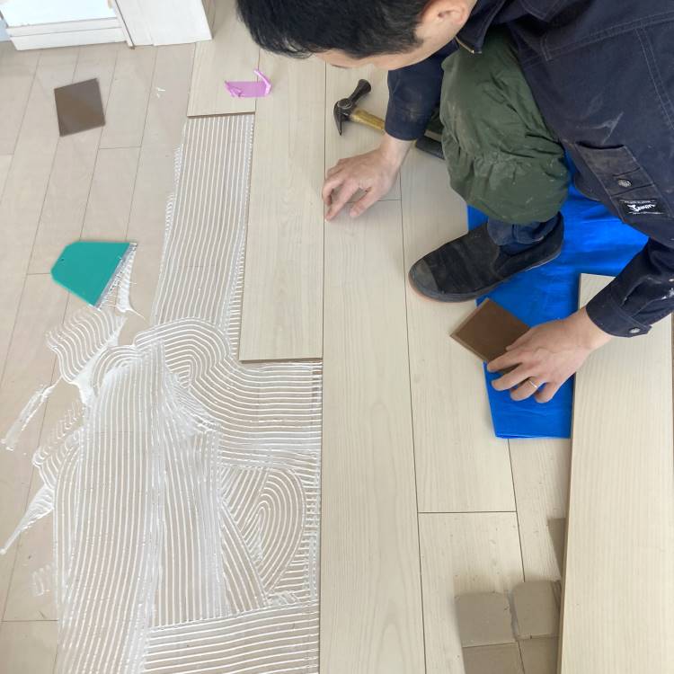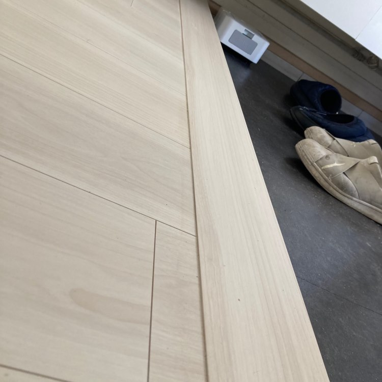 2024年5月15日 フローリングの一部だけが傷んでしまった。ネットを調べると、同じフローリングの品番が絶版になった。仮にあっても、古い箇所と新しい箇所で色がくっきり分かれて格好悪い・雄サネと雌サネで効きあってるから、部分的外すと元には戻らない・巾木もやり替えが必須。他の部分はどこも悪くないのに、フローリングを全面張り替えしないとキレイにならないの?全面張り替えは理不尽にも感じるほどの高額工事なので、そう思うのも無理はないです。正直、全部やり替えるなんて、考えるだけで気が重いですよね。そんな時の選択肢が『フローリング業界初の部分張替えを可能にしたナオスフローリング』です。ナオスフローリングで施工済みの床なら、1枚から必要枚数だけ交換できて、暮らしを止めず(仮住まい、家具の一時保管など)に直せます。1箇所であれば20~30分の作業時間で終わります。色柄の安定ストックと現場でのサンプル合わせで、つぎはぎ感はありません。ドアの干渉や段差が発生しても、独自技術の下端カットや既存床の削り加工で「え?これ本当に上から貼ったの?」と、上貼りとは思えない納まりに施工できます。しかもナオスフローリングは、全面張替え比で最大約80%のコスト削減を実現しています。この記事では、失敗しない判断基準と手順、費用の考え方まで、体験ベースでわかりやすく解説します。既存の建具と見切り材の下にナオスフローリングを収める加工の現場風景です↓↓↓ もくじ1 部分張り替えの成立条件と判断フロー|“ナオス施工床のみ可”の理由1.1 どんな症状なら1部分で直せる?沈み・たわみは必ず補修が前提1.2 20%ルールで見極め|下地の全面交換と部分補強の費用差が境目1.3 “他社フローリング”へのパッチ不可|ナオスで施工済みが必須2 色柄マッチングのコツ|18色の使い分けと廃番時の近似対応2.1 今の床色と同じがいい│現場の光源チェック、手順と注意点2.2 目地・境界の違和感を抑える工夫|見切り材に頼らない納め方2.3 ロット安定・廃番時の運用|近似色でも美観を保つ判断軸3 “上貼りとは思えない”仕上がり│建具・段差の実務対応3.1 ドア干渉は下端カットで解消|見積内訳に明記してトラブル回避3.2 窓下枠・框・見切りの段差調整|既存床を削る独自加工の考え方3.3 弱い下地は部分補強で対応|根太増し打ちと合板差し替え4 床暖房・遮音床での部分張り替え|性能維持のポイント5 床暖房は“既存床上の上貼り”が前提|パネルへ直接は張れません5.1 遮音フローリングの注意|遮音性能は維持、向上はしない5.2 温度管理と暮らし方のコツ|快適性と仕上がりを両立6 費用と運用|価格目安・最小金額・交換在庫・保証6.1 価格|9,000〜10,000円/㎡・最小一式35,000円の内訳6.2 “最大約80%費用削減”の前提条件|全面張替えとの違いを整理6.3 日常メンテと交換運用|ノンワックス・水拭きOK・在庫常備7 まとめ 部分張り替えの成立条件と判断フロー|“ナオス施工床のみ可”の理由朝の光でえぐれ傷が目に入るたびに、気持ちも沈むものです。「でも、全部を替えるのは違う気がする。」と胸の奥でため息がこぼれる瞬間があります。 そんなときに現実解になるのが、ナオスフローリングの部分張り替えです。ナオスフローリングで施工済みの床ならば、同じ仕様の板を1枚から必要な枚数だけ入れ替えられます。 ジョイント形状や厚み、質感、色柄と、まったく同じ床材を入れるので、取り替え部分の違和感がまったくありません。 まずは症状と下地を丁寧に診断し、沈み・浮き・たわみは補修を先行させます。この順番を守ることで、見た目だけでなく踏み心地まできちんと戻ります。とは言っても、今までの部分貼り替えの現場で、下地にまでダメージが及んでいることは経験上、ほとんどないです。なので、部分張り替えの場合は、下地調整の費用はかからないと見ても良いと思います。「必要なところだけ、手早く直して、暮らしを止めない。この三拍子で補修の工賃を大幅削減!」そんな安堵を目指すための考え方と段取りを、ここから具体的にお伝えします。上貼りと張替えの全体像を先に整理したい方は→フローリングは張り替える?上から貼る?費用・工期・仕上がりを6帖と3LDKで比較!どんな症状なら1部分で直せる?沈み・たわみは必ず補修が前提部分張り替えの主役は、えぐれ傷や表面のめくれ、家電やイス脚で付いた局所的な凹み、日焼けによる濃淡差など“点”で起きた表面の損傷です。 一方で、歩くとフワッと沈む、キシむ音が続く、踏み替えで段差を感じるといった症状は下地が原因(フローリングの下の部分)です。 この場合、板だけ替えても根本は解決せず、数カ月後に不満がぶり返します。 だからこそ沈み・浮き・段差は補修が必須です。具体的には、弱った部分の根太を増し打ちし、劣化した合板は該当箇所を部分的に切り抜いて新しい合板へ差し替えます。↓↓↓ 下地が整えば、交換枚数は最小で済み、踏み心地も「スッ」と軽やかに戻ります。 「見