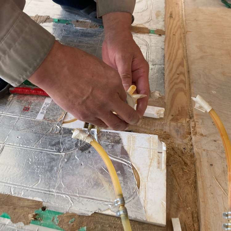 温水式床暖房は、施工時または初回使用時に一度だけパイプの中へ水を満たします。